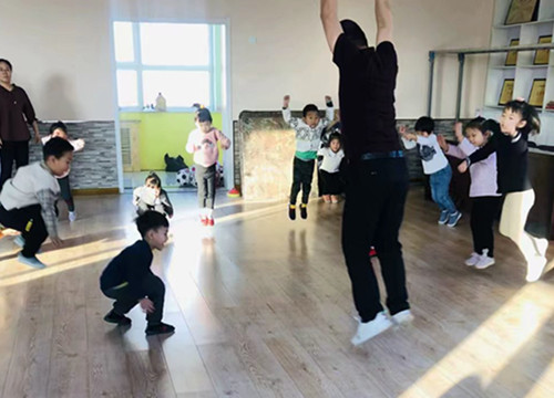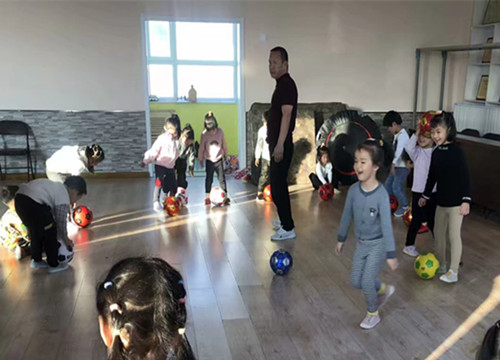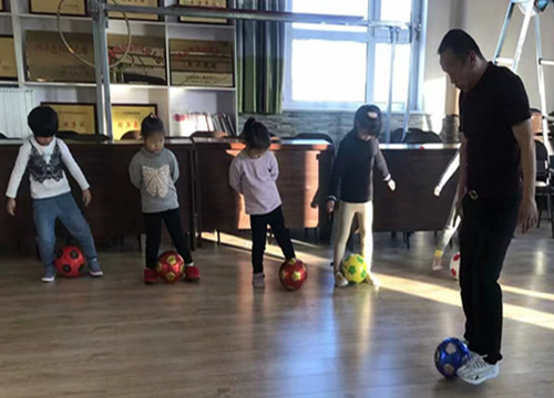 明亮的室内活动场地足球教师崔老师正在给孩子们以游戏的形式开展热身、跑步、拉伸、集体游戏、脚底运球、停球练习,现场气氛热烈!相比一板一眼的足球技术训练,孩子们在更符合年龄特点的足球小游戏中学会了踢足球的基本动作。