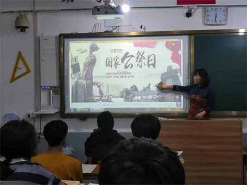 学校还组织各班级开展了“勿忘国耻 勇担使命”主题班会。高一(1)班班主任初乐香老师通过班会课,带领同学们了解南京大屠杀死难者国家公祭日的由来,回顾南京大屠杀那段沉痛而屈辱的历史,讲述中华民族从站起来、富起来到强起来的历史飞跃,感悟中华民族披荆斩棘的奋斗历程、磅礴力量。她激励同学们时刻铭记“请党放心,强国有我”的铮铮誓言,增强做中国人的志气、骨气、底气,不负时代,不负韶华,不负党和人民的殷切期望,为实现中华民族伟大复兴的中国梦而努力奋斗。