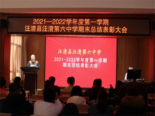2022年1月14日,汪清县汪清第六中学召开期末总结表彰大会,工会主席初乐香主持。