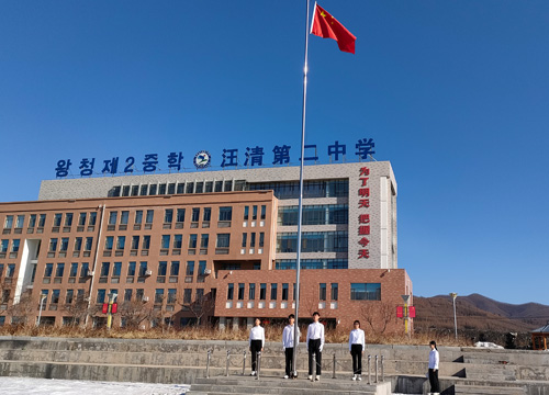 开学典礼在庄严肃穆的国歌声中拉开序幕,全体师生注视着冉冉升起的五星红旗。国旗在微风中徐徐展开,伴着和煦的阳光,在汪清二中的上空迎风飘扬。