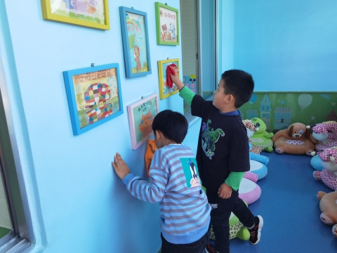 首先,各班老师通过多媒体向孩子们介绍雷锋叔叔的故事,让孩子们知道雷锋叔叔是一位爱做好事、爱帮助别人的解放军叔叔, 引导孩子们从身边的小事做起,做自己力所能及的好事,同时倡议家长,以故事、谈话等多种形式让孩子们进行一步认识雷锋,了解雷锋生前的许多感人事迹。随后,大班小朋友来到小班帮助弟弟妹妹们整理床铺、玩具等,中班小朋友来到走廊、公共区角、公共活动室帮助保洁员清擦楼梯扶手、小椅子、玩具柜等,小班小朋友开展了学学唱唱的活动,做力所能及的互助活动。