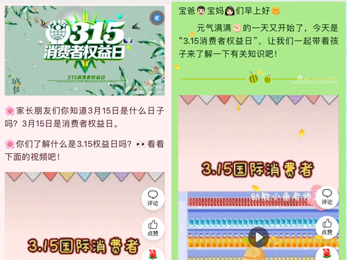 3月15日是消费者权益日,为提升幼儿消费者主人公意识,从小积累良好的生活经验,提高幼儿自我保护能力,形成良好的购买及自我权益维护的意识,2022年3月15日,汪清县第三幼儿园各年龄段在线上向家长们推送了3.15消费者权益日相关知识。