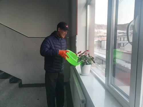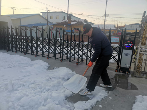 学校全面拉开抗击疫情的号角后,他独自承担起了维护学校日常、守卫校园安全的责任。孙主任贴心的考虑到疫情期间通勤教师出行不便,主动做好值班工作,日夜坚守。为了让师生复课时依然能看到各室、班级里的鲜艳花朵,他定期浇水,让宁静的校园充满生机。接连的两场大雪,不仅给疫情防控带来不便,也给学校披上了白色的外衣,孙主任独自将积雪清扫完毕,他的身影构成了校园中最美的风景。虽然身在学校,但依旧心系师生安全。在值班间隙,孙主任定期对教学楼的各个角落进行全面喷洒消毒,为全体师生复课提供了干净整洁的学习工作环境。