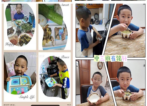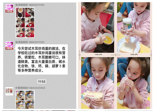 小班教师向家长推送了“讲卫生的好宝宝”活动美篇。家长通过美篇指导幼儿在听听、看看、学学的活动中,不断增强环保意识,养成勤洗手、勤通风、使用公筷等良好卫生习惯,知道“戴口罩”是常态化疫情防控的重要举措。中班教师向家长推送了“光盘行动从我做起”活动美篇。家长通过美篇带领幼儿在讲故事、玩手指游戏、创意绘画等活动中,让孩子了解粮食来之不易,教育幼儿要珍惜粮食,明白勤俭节约的道理。大班教师向家长推送了“健康美食”活动美篇。家长通过美篇中的短视频、图片引导幼儿学习区分“营养食品”和“垃圾食品”,并在看看说说的过程中认识“营养金字塔”,初步了解人体所需要的营养物质,并教育幼儿在日常饮食中不挑食,合理搭配膳食。