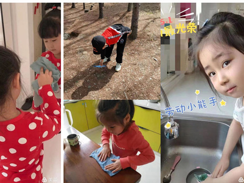 活动中,小班幼儿在爸爸妈妈的带领下为疫情中坚守在一线的劳动者和其他劳动者献上感谢手势舞《听我说谢谢你》,孩子们还帮助爸爸妈妈做些力所能及的事情。中班幼儿通过观看视频、图片,知道劳动者的职业和辛苦,作为家庭一份子,也学会帮助爸爸妈妈分担做一些家务。部分中班幼儿父母还为孩子们录制了小感想的视频《我想对您说》,对疫情中坚守在一线的劳动者和其他劳动者表示感谢。已经是大哥哥大姐姐的大班幼儿在爸爸妈妈的配合下学习整理书桌,整理归纳自己的物品,他们还通过绘画的方式,画下来自己想为此次抗战在疫情一线辛苦工作的劳动者们做哪些力所能及的事,以此表达自己的感恩之情。