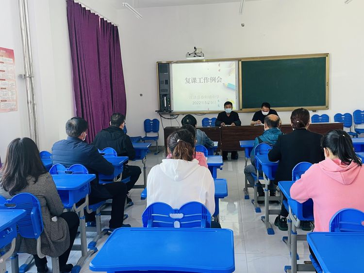 五月的天空阳光明媚,校园鲜花烂漫。国内疫情持续向好,我校初三年级于5月9日复学复课,根据教育局线上线下教学衔接工作相关要求,结合学校实际情况,春阳镇中学于5月11日上午召开了初三级全体教师会议。会议由教导处王永利主任主持,毛培武校长参加此次会议并作重要讲话。